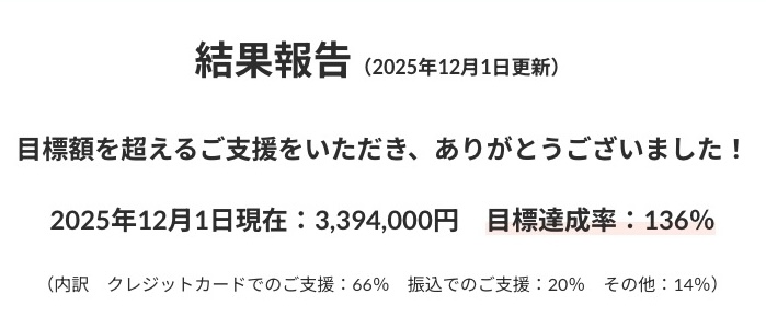 クラウドファンディングは終了いたしました。多くの方々のご支援に心から感謝いたします。